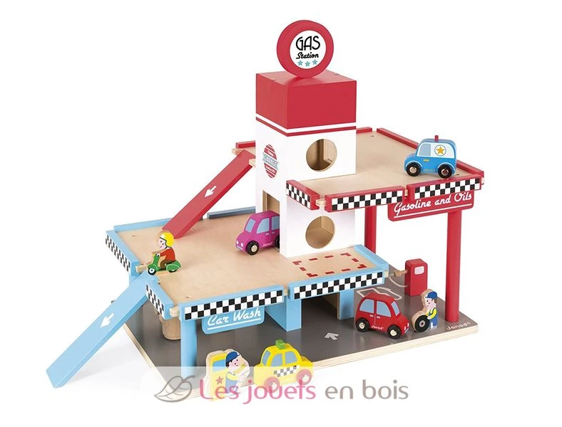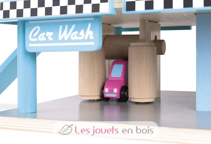 In dieser mehrstöckigen Spiel-Tankstelle können sich kleine Autofans nach Herzenslust austoben. Die Spielzeugautos gelangen über die Rampen und den Aufzug in die unterschiedlichen Etagen, wo sie die Waschbürsten passieren können. Das Spielset garantiert stundenlanges Spielvergnügen und jede Menge Spaß.