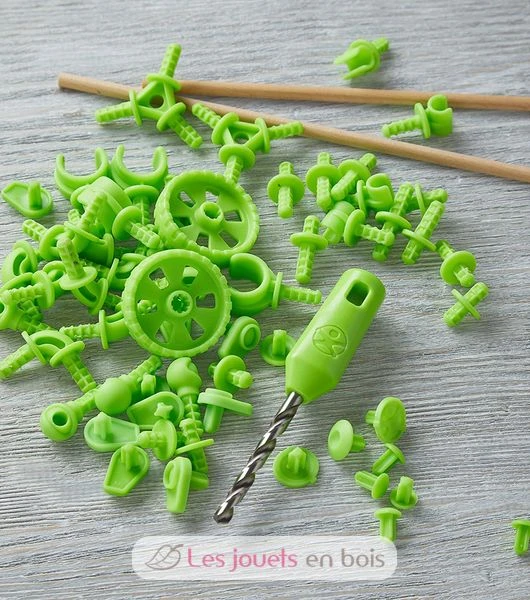 Mit dem Connectors – Konstruktions-Set Technik lassen sich individuelle, kreative, bewegliche Konstruktionen verwirklichen. Einfach oder komplex, die Connectors ermöglichen immer wieder neue vielseitige und flexible Konstruktionen aus selbst gefundenen Naturmaterialien. Ob Maschine, Roboter oder Boot – jede Konstruktion ist einzigartig und funktionsfähig. Die Räder bringen immer wieder neue Ideen ins Rollen. Ein passender Handbohrer mit ergonomisch geformtem Griff, ausgewählte Holz- und Korkteile und eine bebilderte Anleitung erleichtern den Kindern das selbstständige Konstruieren.