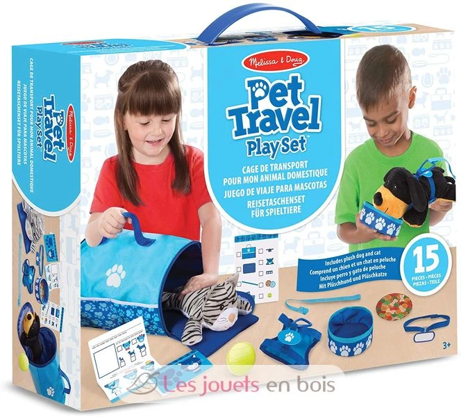 15-teiliges Rollenspielset für Haustiere mit Plüschkatze und Hund sowie Reiseutensilien