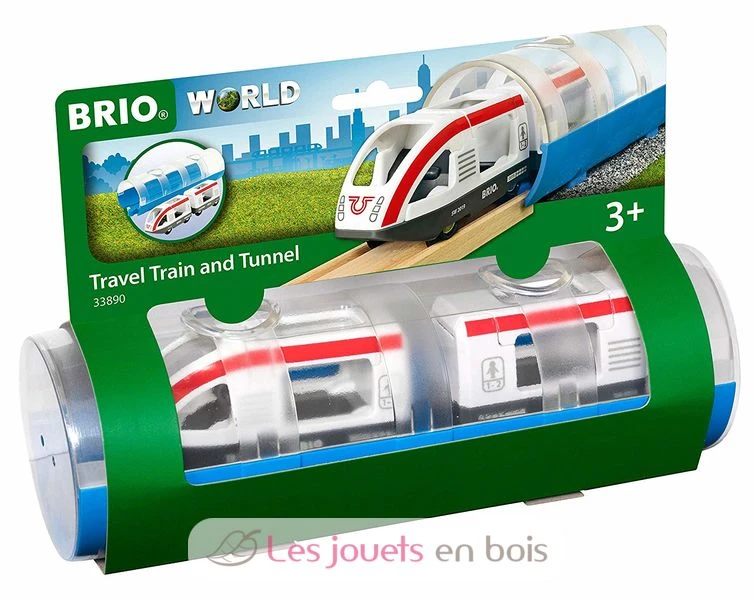 Tunnel Box Reisezug von Brio World. Enthalten ist eine wiederverwendbare Verpackungen, die sich in einen durchsichtigen Tunnel für aufregende Spiele verwandeln.