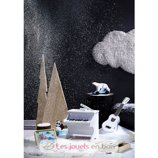 Dieses entzückende weiße Klavier hat 18 Tasten und einen Notenständer. Ein musikalisches Spielzeug, das romantische und poetische Liederabende im Zimmer Ihres Kindes verspricht!