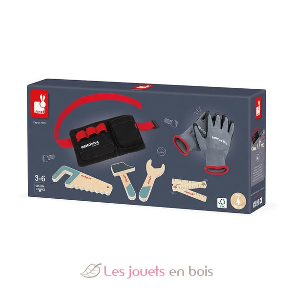 Werkzeuggürtel mit Handschuhen, ein Holzspielzeug von Janod Marke (J06475).